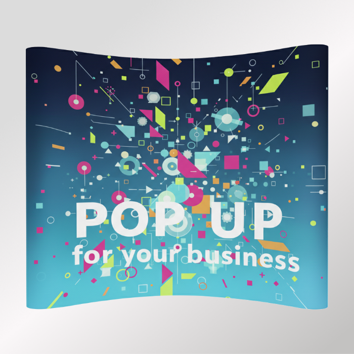 Unser Bestseller Pop Up Faltdisplay Premium ist die ideale Lösung für den professionellen Messe- und Eventauftritt. Mit seiner elegant gebogenen Front zieht es sofort Aufmerksamkeit auf sich und bietet eine großzügige Präsentationsfläche.