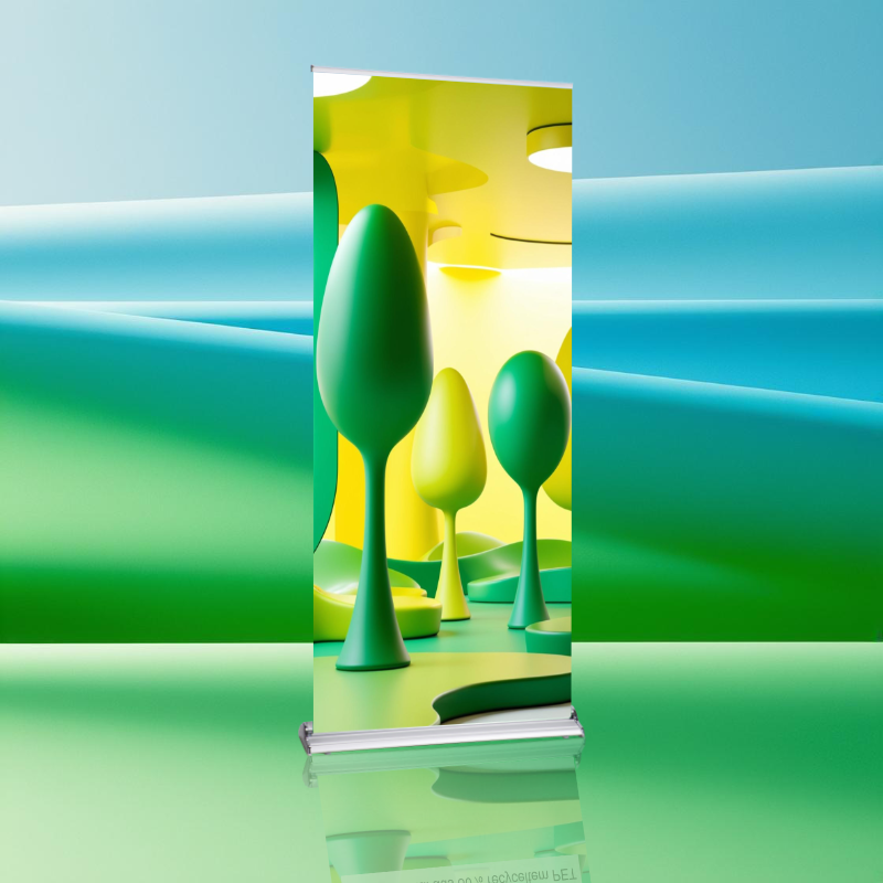 Unser Roll Up Professionell upcycling Druckmaterial wird aus mindestens 80% recyceltem PET hergestellt und ist frei von PVC.